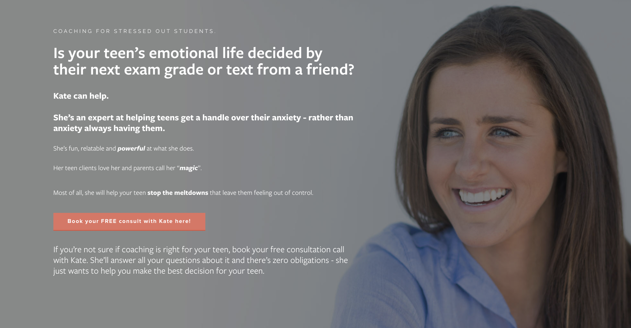 Fill out the form below and Kate will be in touch within 24 hours to schedule your free consult call about coaching for your teen!